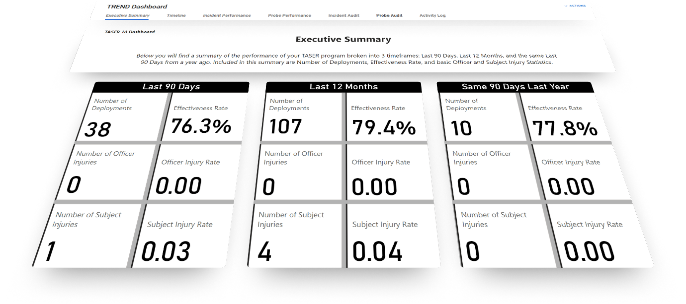 With Axon’s TREND platform, the department gained insight into usage data. “TREND made it simple to show how often the TASER was utilized but not deployed,” Smith said.